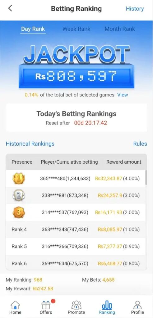 - Example: Finish three rounds of “Lucky Spin” = 150 PKR bonus.
