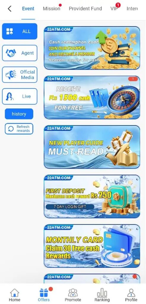 - What You Get: Extra points or cash when you join 22ATM for the first time.